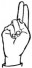 На ћирилици написано ЛУНА ВИДИЋ састоји се из 9 слова [?]. Исписано ћириличном једноручном азбуком за глувонеме: